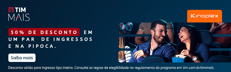 Desconto de 50% em um par de ingressos tipo inteira + 50% de desconto no combo MEGA, disponível para os clientes TIM participantes do programa TIM Mais, seguindo as regras de elegibilidade deste benefício dispostas no regulamento do programa. Confira as regras e os cinemas participantes.